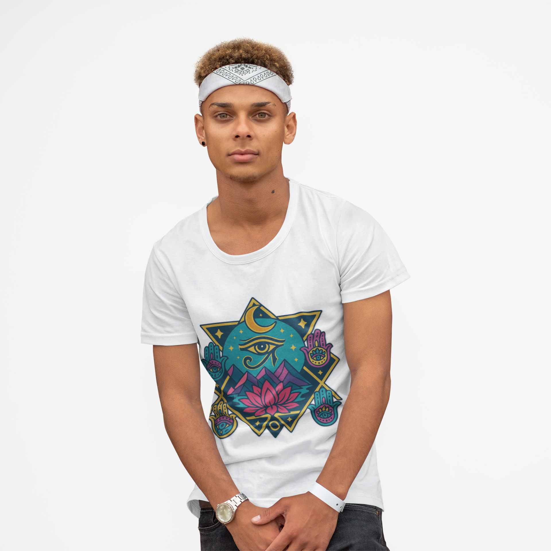 Awaken your higher self with the Sacred Geometry Lotus Tee, a radiant fusion of cosmic symbols and divine design. Centered around the Eye of Protection, surrounded by Hamsa hands, a blooming lotus, and crowned by the crescent moon, this piece embodies intuition, rebirth, and spiritual harmony. It’s more than a tee — it’s a wearable mandala for awakening consciousness.
